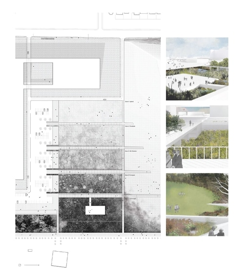 Exercise 04: Transformation / Students developed transformative design proposals in their respective suburban parks (from exercise 03). Rooted in the research, conceptual frameworks, and the contextual analysis revealed from previous phases, each proposal included a series of measured and precise topographic manipulations, as well as a set of transformative, vegetal, and programmatic moves. These moves enhanced the performative, cultural experience, and functionality of the parks.