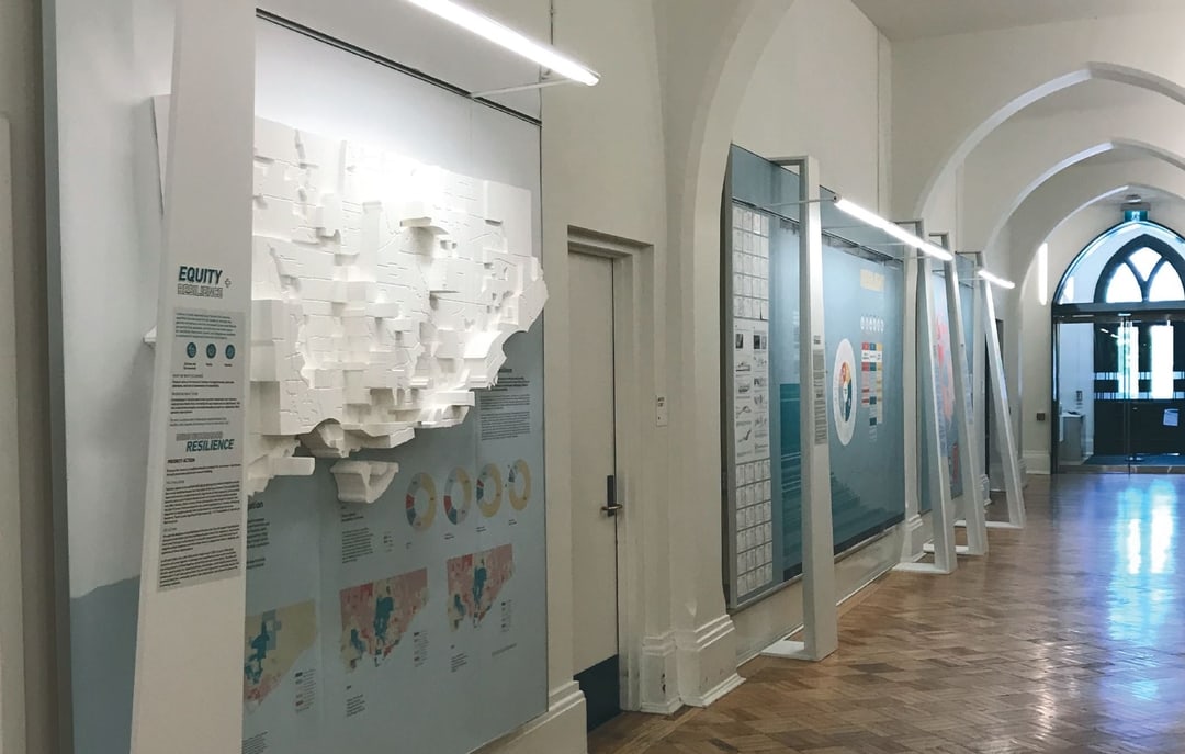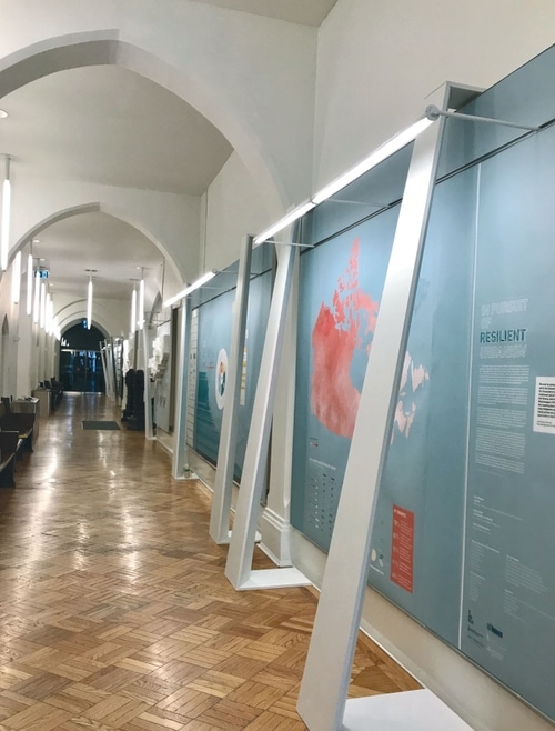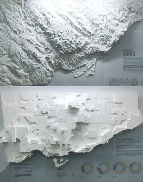 The exhibition reflects the strategy’s 3 focus Areas within which all of its “Actions” are arranged: Resilient People and Neighbourhoods; Resilient Design and Infrastructure; and Leading a Resilient City. A particular focus will be given to resilient design and urbanism work from students and faculty from across the Daniels Faculty and the University of Toronto’s School of Cities network. Continued engagement with the exhibition included a guided tour with Jane Welsh, Project Manager, Environmental Planning Strategic Initiatives, Policy & Analysis City Planning for over 20 City of Toronto staff.